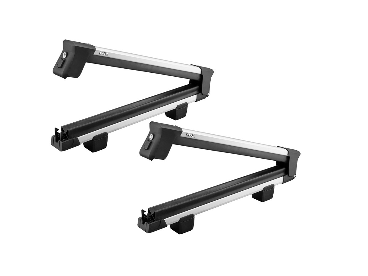 Крепление для перевозки лыж и сноубордов на поперечинах. Каркас алюминиевый. Цвет серебристый. Замыкается на металлический замок. Для 4-х пар лыж.