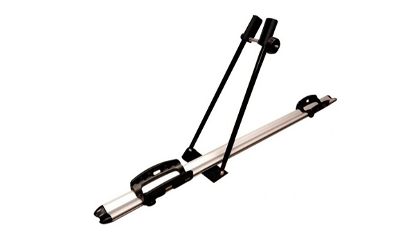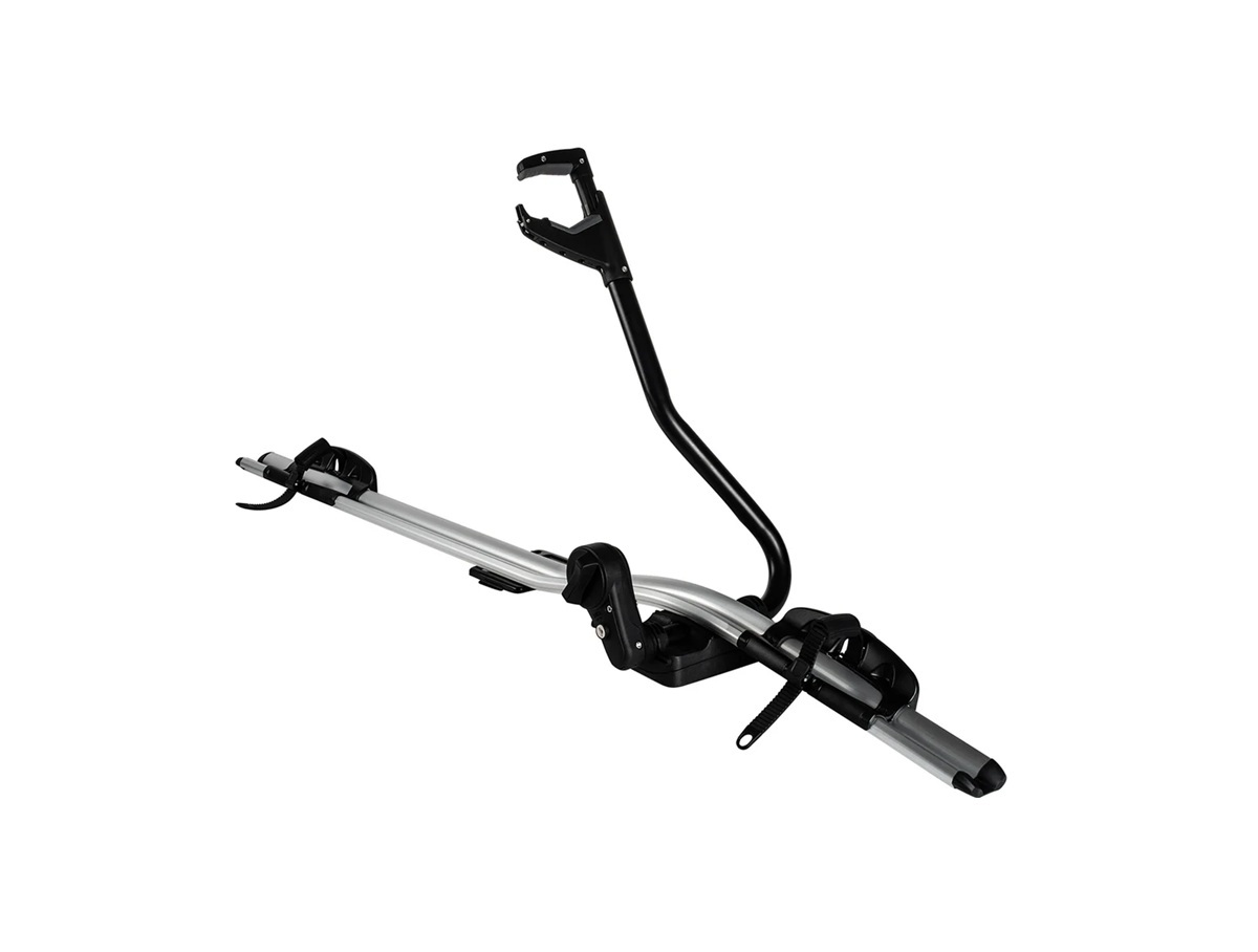 Оригинальная форма конструкции велокрепления изготовлена из легкого анодированного алюминия. 2 фиксатора колес из полиамида снабжены металлической фурнитурой. Массивная изогнутая труба толщиной 30 мм, в верхней части которой расположены два зажимных элемента рамы велосипеда, надежно удерживает велосипед на крыше. Благодаря форме фиксатора нет необходимости придерживать велосипед, пока вы закрепляете колёса. Зажатие рамы происходит посредством вращения рукоятки, расположенной в нижней части велокрепления. При этом, вам не нужно вставать на порог автомобиля и тянуться, как это обычно происходит с креплениями других производителей. Механизм позволяет легко фиксировать велосипеды с рамой диаметром до 80 мм.